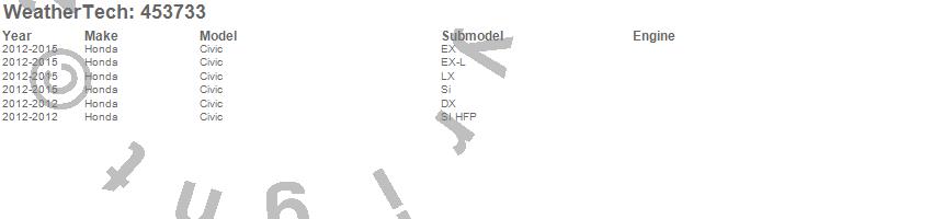 Below is an abbreviated list of applications for the FloorLiner DigitalFit.Civic, Honda, 2015, 2014, 2013, 2012
