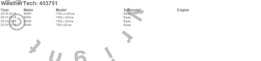 Below is an abbreviated list of applications for the FloorLiner DigitalFit.740Ld xDrive, 740Li xDrive, 750i xDrive, 750Li xDrive, BMW, 2015, 2014, 2013, 2012, 2011, 2010