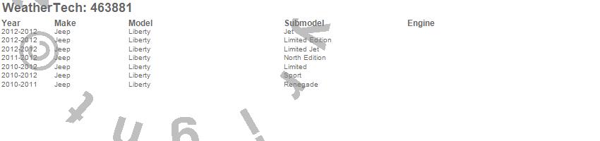 Below is an abbreviated list of applications for the FloorLiner DigitalFit.Liberty, Jeep, 2012, 2011, 2010
