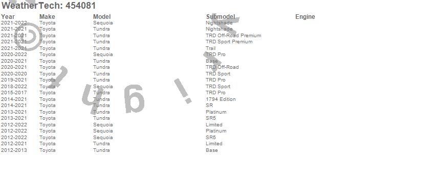Below is an abbreviated list of applications for the FloorLiner DigitalFit.Sequoia, Tundra, Toyota, 2022, 2021, 2020, 2019, 2018, 2017, 2016, 2015, 2014, 2013, 2012