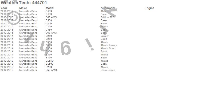 Below is an abbreviated list of applications for the FloorLiner DigitalFit.C250, C300, C350, C63 AMG, CL550, CL600, E350, E400, E550, Mercedes-Benz, 2017, 2016, 2015, 2014, 2013, 2012