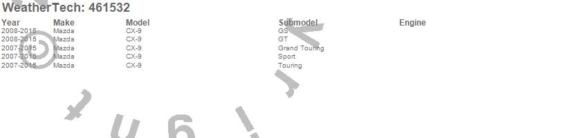 Below is an abbreviated list of applications for the FloorLiner DigitalFit.CX-9, Mazda, 2015, 2014, 2013, 2012, 2011, 2010, 2009, 2008, 2007