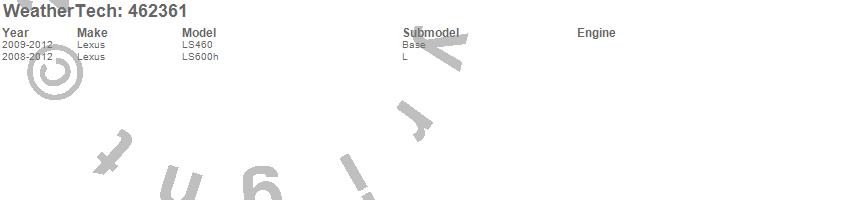 Below is an abbreviated list of applications for the FloorLiner DigitalFit.LS460, LS600h, Lexus, 2012, 2011, 2010, 2009, 2008