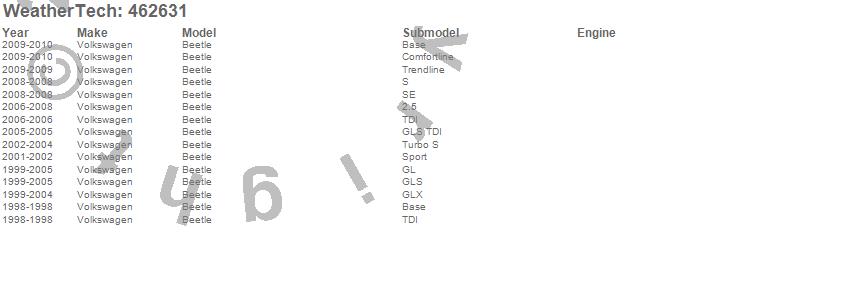 Below is an abbreviated list of applications for the FloorLiner DigitalFit.Beetle, Volkswagen, 2010, 2009, 2008, 2007, 2006, 2005, 2004, 2003, 2002, 2001, 2000, 1999, 1998
