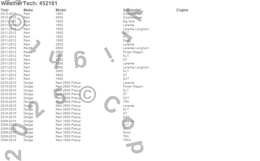 Below is an abbreviated list of applications for the FloorLiner DigitalFit.1500, 2500, 3500, Ram 1500, Ram 2500, Ram 3500, Dodge, Ram, 2013, 2012, 2011, 2010, 2009