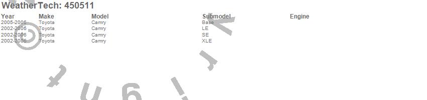 Below is an abbreviated list of applications for the FloorLiner DigitalFit.Camry, Toyota, 2006, 2005, 2004, 2003, 2002