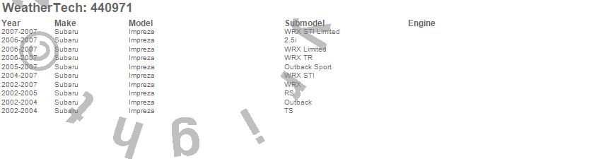 Below is an abbreviated list of applications for the FloorLiner DigitalFit.Impreza, Subaru, 2007, 2006, 2005, 2004, 2003, 2002