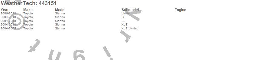 Below is an abbreviated list of applications for the FloorLiner DigitalFit.Sienna, Toyota, 2010, 2009, 2008, 2007, 2006, 2005, 2004