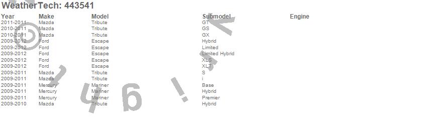 Below is an abbreviated list of applications for the FloorLiner DigitalFit.Escape, Mariner, Tribute, Ford, Mazda, Mercury, 2012, 2011, 2010, 2009