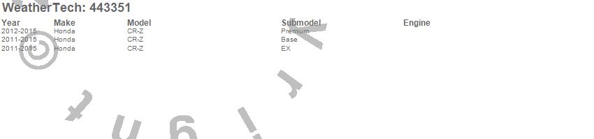 Below is an abbreviated list of applications for the FloorLiner DigitalFit.CR-Z, Honda, 2015, 2014, 2013, 2012, 2011