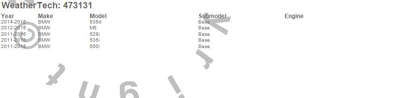 Below is an abbreviated list of applications for the FloorLiner DigitalFit.528i, 535d, 535i, 550i, M5, BMW, 2016, 2015, 2014, 2013, 2012, 2011