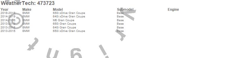 Below is an abbreviated list of applications for the FloorLiner DigitalFit.640i Gran Coupe, 640i xDrive Gran Coupe, 640i xDrive Gran Turismo, 650i Gran Coupe, 650i xDrive Gran Coupe, Alpina B6 Gran Coupe, Alpina B6 xDrive Gran Coupe, M6 Gran Coupe, BMW, 2019, 2018, 2017, 2016, 2015, 2014, 2013