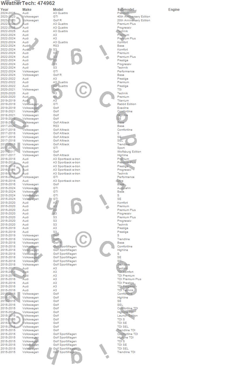 Below is an abbreviated list of applications for the FloorLiner DigitalFit.A3, A3 Quattro, A3 Sportback e-tron, Golf, Golf Alltrack, Golf R, Golf SportWagen, GTI, RS3, S3, Audi, Volkswagen, 2026, 2025, 2024, 2023, 2022, 2021, 2020, 2019