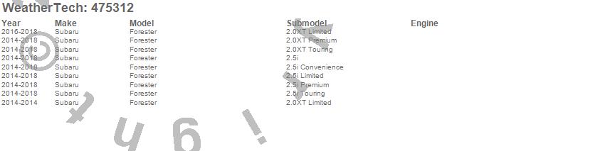 Below is an abbreviated list of applications for the FloorLiner DigitalFit.Forester, Subaru, 2018, 2017, 2016, 2015, 2014