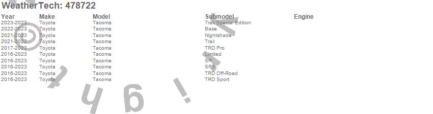 Below is an abbreviated list of applications for the FloorLiner DigitalFit.Tacoma, Toyota, 2023, 2022, 2021, 2020, 2019, 2018, 2017, 2016