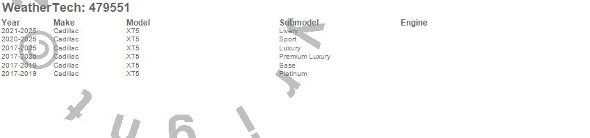 Below is an abbreviated list of applications for the FloorLiner DigitalFit.XT5, Cadillac, 2025, 2024, 2023, 2022, 2021, 2020, 2019, 2018, 2017