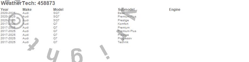 Below is an abbreviated list of applications for the FloorLiner DigitalFit.Q7, SQ7, Audi, 2026, 2025, 2024, 2023, 2022, 2021, 2020, 2019, 2018, 2017