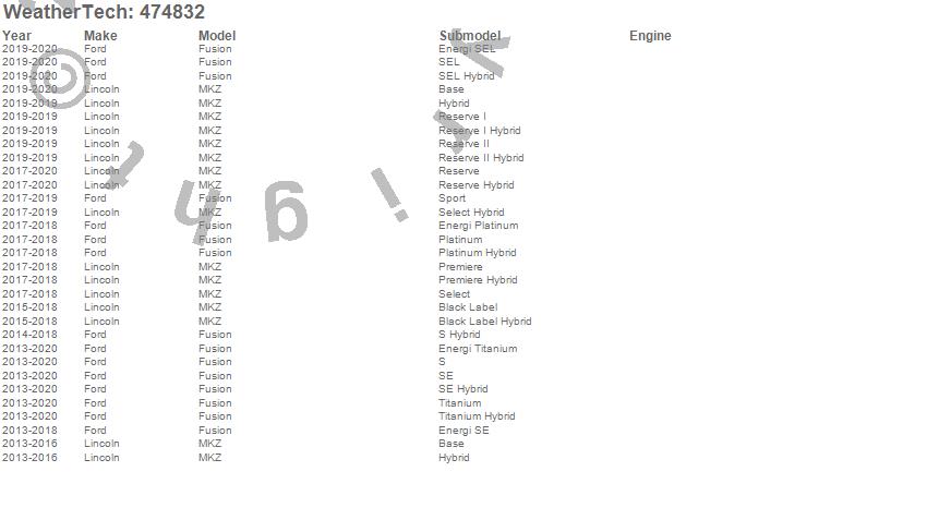 Below is an abbreviated list of applications for the FloorLiner DigitalFit.Fusion, MKZ, Ford, Lincoln, 2020, 2019, 2018, 2017, 2016, 2015, 2014, 2013
