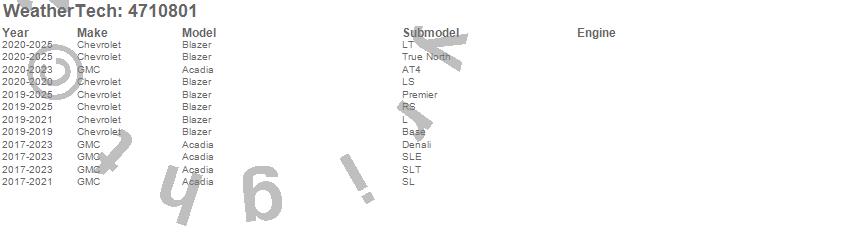 Below is an abbreviated list of applications for the FloorLiner DigitalFit.Acadia, Blazer, Chevrolet, GMC, 2026, 2025, 2024, 2023, 2022, 2021, 2020, 2019, 2018, 2017