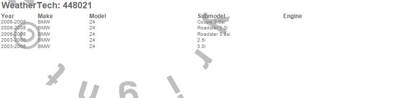 Below is an abbreviated list of applications for the FloorLiner DigitalFit.Z4, BMW, 2008, 2007, 2006, 2005, 2004, 2003