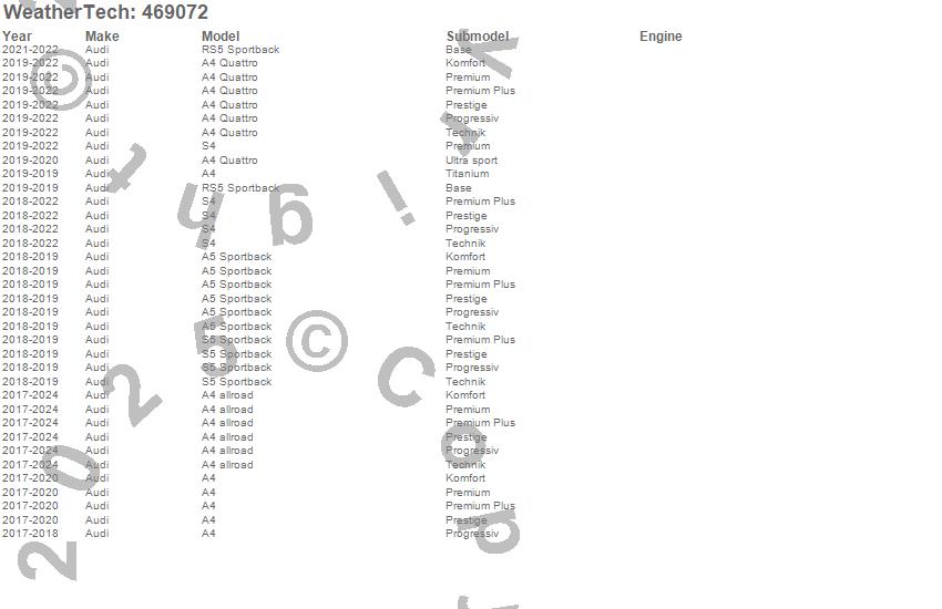 Below is an abbreviated list of applications for the FloorLiner DigitalFit.A4, A4 allroad, A4 Quattro, A5 Sportback, RS5 Sportback, S4, S5 Sportback, Audi, 2024, 2023, 2022, 2021, 2020, 2019, 2018, 2017
