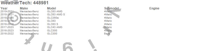 Below is an abbreviated list of applications for the FloorLiner DigitalFit.GLC300, GLC350e, GLC43 AMG, GLC63, GLC63 AMG, GLC63 AMG S, GLC63 S, Mercedes-Benz, 2023, 2022, 2021, 2020, 2019, 2018, 2017, 2016