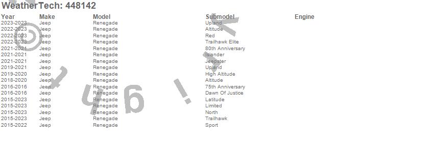 Below is an abbreviated list of applications for the FloorLiner DigitalFit.Renegade, Jeep, 2023, 2022, 2021, 2020, 2019, 2018, 2017, 2016, 2015