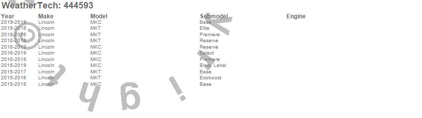 Below is an abbreviated list of applications for the FloorLiner DigitalFit.MKC, MKT, Lincoln, 2019, 2018, 2017, 2016, 2015