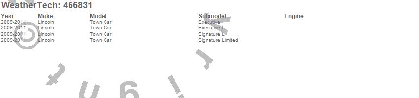 Below is an abbreviated list of applications for the FloorLiner DigitalFit.Town Car, Lincoln, 2011, 2010, 2009, 2008, 2007, 2006, 2005, 2004, 2003, 2002, 2001, 2000, 1999, 1998