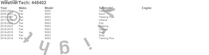 Below is an abbreviated list of applications for the FloorLiner DigitalFit.500X, Fiat, 2023, 2022, 2021, 2020, 2019, 2018, 2017, 2016