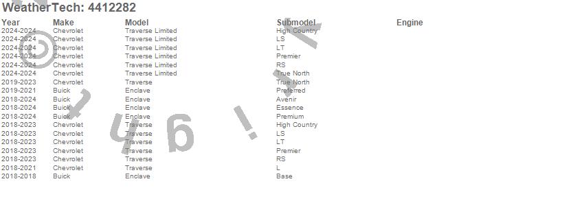 Below is an abbreviated list of applications for the FloorLiner DigitalFit.Enclave, Traverse, Traverse Limited, Buick, Chevrolet, 2024, 2023, 2022, 2021, 2020, 2019, 2018