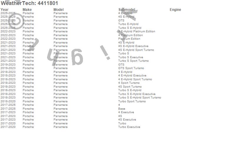 Below is an abbreviated list of applications for the FloorLiner DigitalFit.Panamera, Porsche, 2023, 2022, 2021, 2020, 2019, 2018, 2017