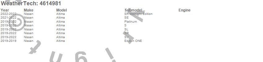 Below is an abbreviated list of applications for the FloorLiner DigitalFit.Altima, Nissan, 2022, 2021, 2020, 2019