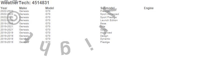 Below is an abbreviated list of applications for the FloorLiner DigitalFit.G70, Genesis, 2025, 2024, 2023, 2022, 2021, 2020, 2019