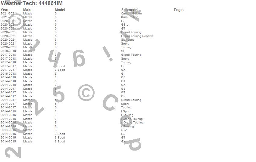 Below is an abbreviated list of applications for the FloorLiner HP.3, 3 Sport, 6, Mazda, 2021, 2020, 2018, 2017, 2016, 2015, 2014