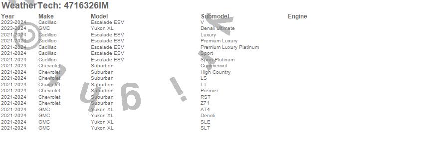 Below is an abbreviated list of applications for the FloorLiner HP.Escalade ESV, Suburban, Yukon XL, Cadillac, Chevrolet, GMC, 2025, 2024, 2023, 2022, 2021