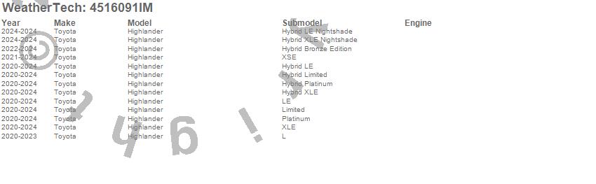 Below is an abbreviated list of applications for the FloorLiner HP.Highlander, Toyota, 2025, 2024, 2023, 2022, 2021, 2020