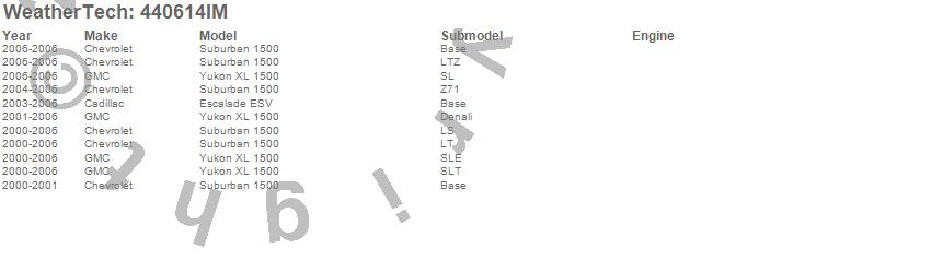 Below is an abbreviated list of applications for the FloorLiner HP.Escalade ESV, Suburban 1500, Yukon XL 1500, Cadillac, Chevrolet, GMC, 2006, 2005, 2004, 2003, 2002, 2001, 2000