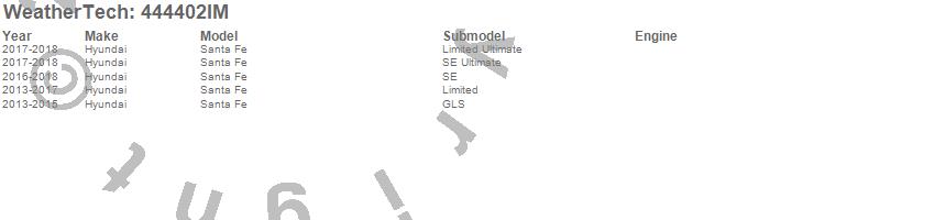 Below is an abbreviated list of applications for the FloorLiner HP.Santa Fe, Hyundai, 2018, 2017, 2016, 2015, 2014, 2013