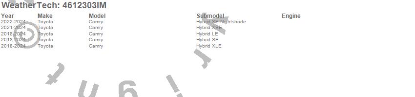 Below is an abbreviated list of applications for the FloorLiner HP.Camry, Toyota, 2024, 2023, 2022, 2021, 2020, 2019, 2018