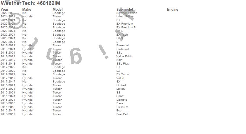 Below is an abbreviated list of applications for the FloorLiner HP.Sportage, Tucson, Hyundai, Kia, 2022, 2021, 2020, 2019, 2018, 2017, 2016
