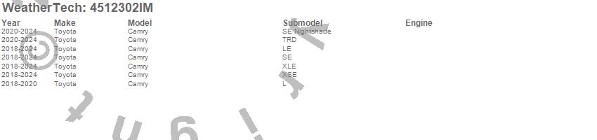 Below is an abbreviated list of applications for the FloorLiner HP.Camry, Toyota, 2024, 2023, 2022, 2021, 2020, 2019, 2018