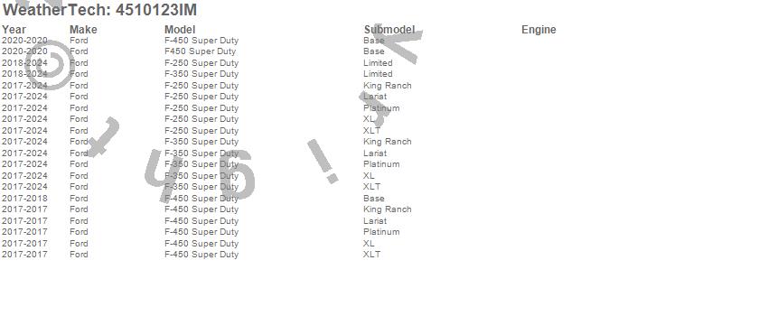 Below is an abbreviated list of applications for the FloorLiner HP.F-250 Super Duty, F-350 Super Duty, F-450 Super Duty, F450 Super Duty, Ford, 2025, 2024, 2023, 2022, 2021, 2020, 2019, 2018, 2017