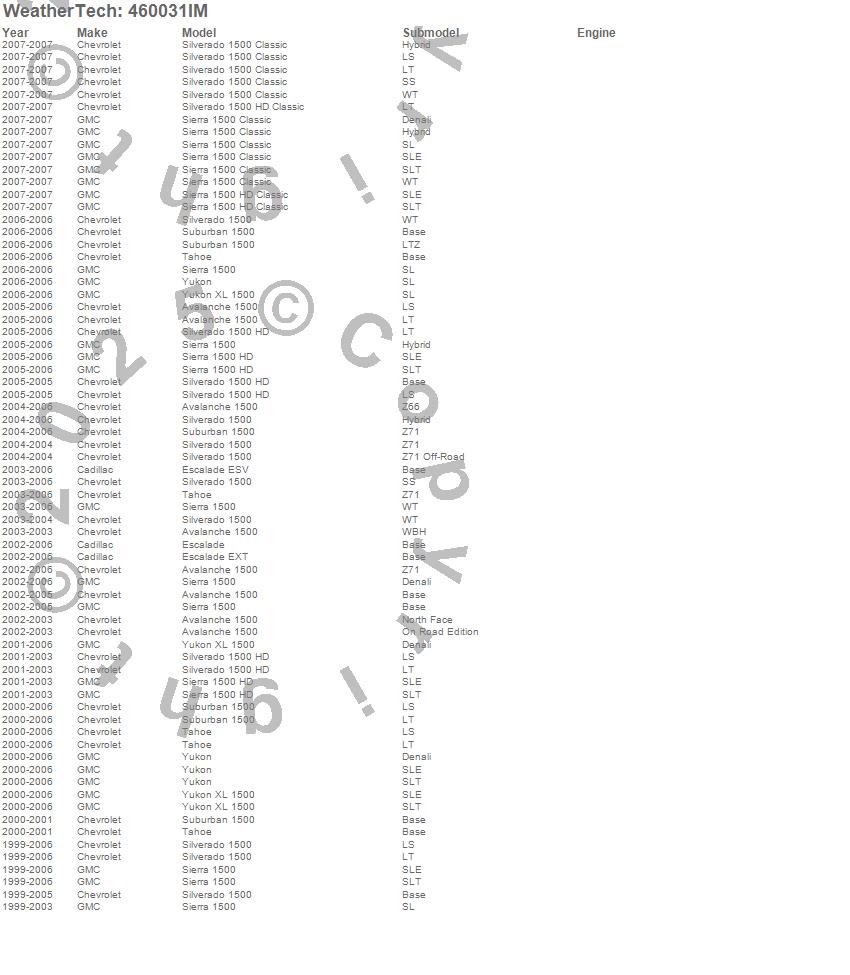 Below is an abbreviated list of applications for the FloorLiner HP.Avalanche 1500, Escalade, Escalade ESV, Escalade EXT, Sierra 1500, Sierra 1500 Classic, Sierra 1500 HD, Sierra 1500 HD Classic, Silverado 1500, Silverado 1500 Classic, Silverado 1500 HD, Silverado 1500 HD Classic, Suburban 1500, Tahoe, Yukon, Yukon XL 1500, Cadillac, Chevrolet, GMC, 2007