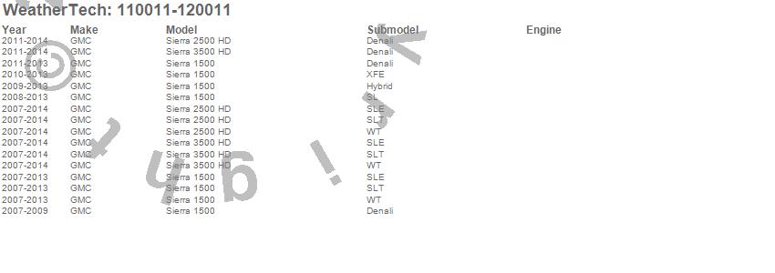 Below is an abbreviated list of applications for the MudFlap No-Drill DigitalFit MudFlap Kit.Sierra 1500, Sierra 2500 HD, Sierra 3500 HD, GMC, 2014, 2013, 2012, 2011, 2010, 2009, 2008, 2007