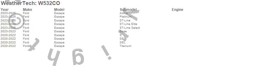Below is an abbreviated list of applications for the All Weather Floor Mats.Escape, Ford, 2026, 2025, 2024, 2023, 2022, 2021, 2020