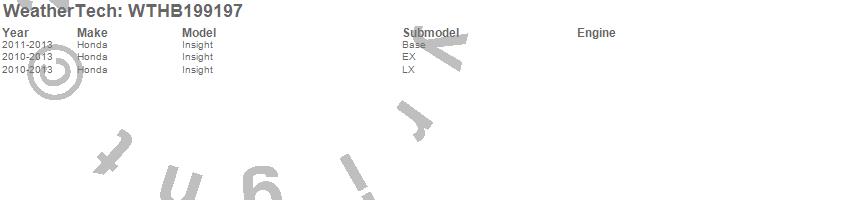 Below is an abbreviated list of applications for the All Weather Floor Mats.Insight, Honda, 2013, 2012, 2011, 2010