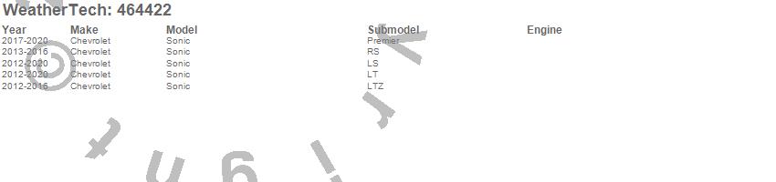 Below is an abbreviated list of applications for the FloorLiner DigitalFit.Sonic, Chevrolet, 2020, 2019, 2018, 2017, 2016, 2015, 2014, 2013, 2012