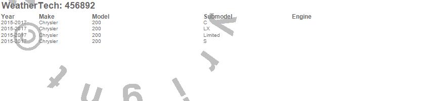 Below is an abbreviated list of applications for the FloorLiner DigitalFit.200, Chrysler, 2017, 2016, 2015