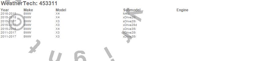 Below is an abbreviated list of applications for the FloorLiner DigitalFit.X3, X4, BMW, 2018, 2017, 2016, 2015, 2014, 2013, 2012, 2011